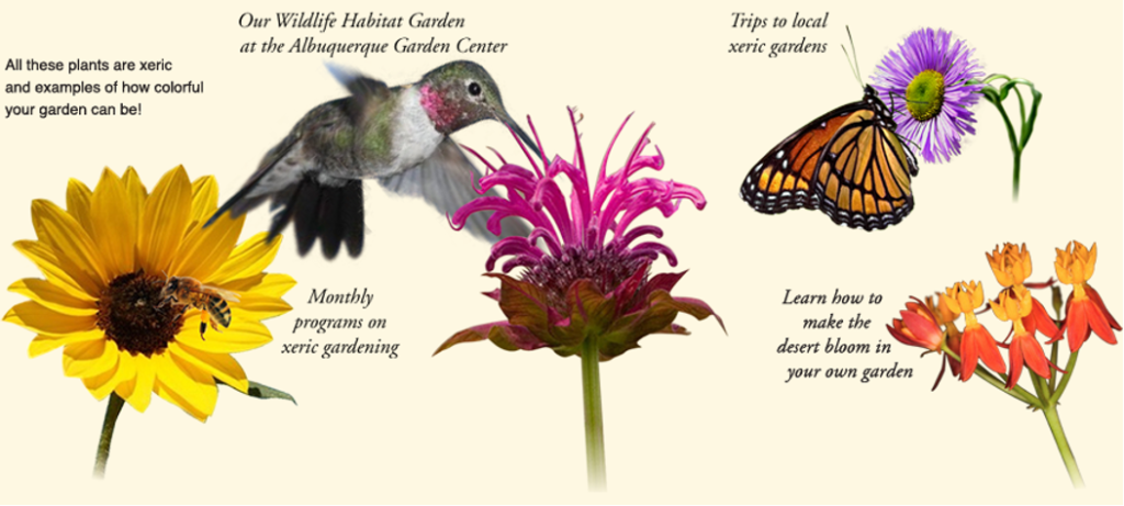 The Xeric Garden Club maintains a Wildlife Habitat Garden in the Albuquerque Garden Council’s demonstration gardens adjacent to the Los Altos Community Center. Garden hours: Monday–Friday 9:30am–2:30pm, April 15–October.